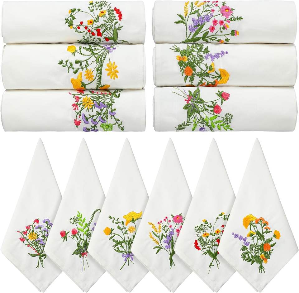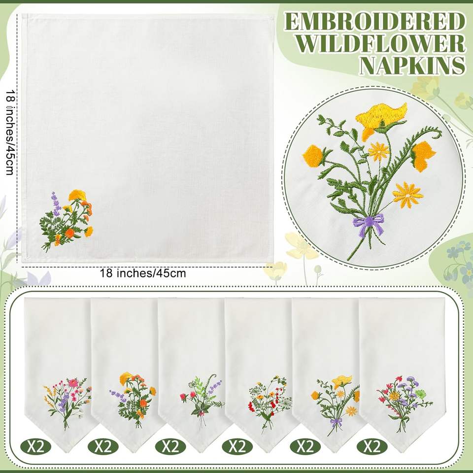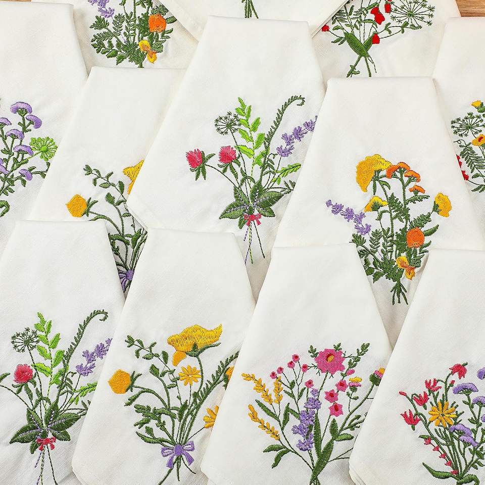 Servilletas de Lino Bordadas de Lujo Personalizadas para Mesa de Comedor o Boda, Elegantes Servilletas de Tela con Diseño Floral, Mantel Individual