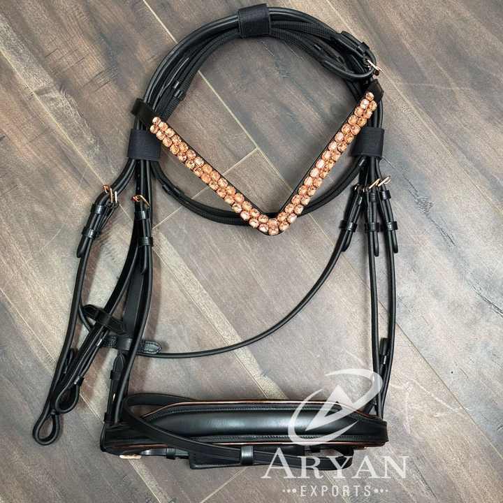Caballos de cuero genuino con cristal de oro rosaNombre del producto