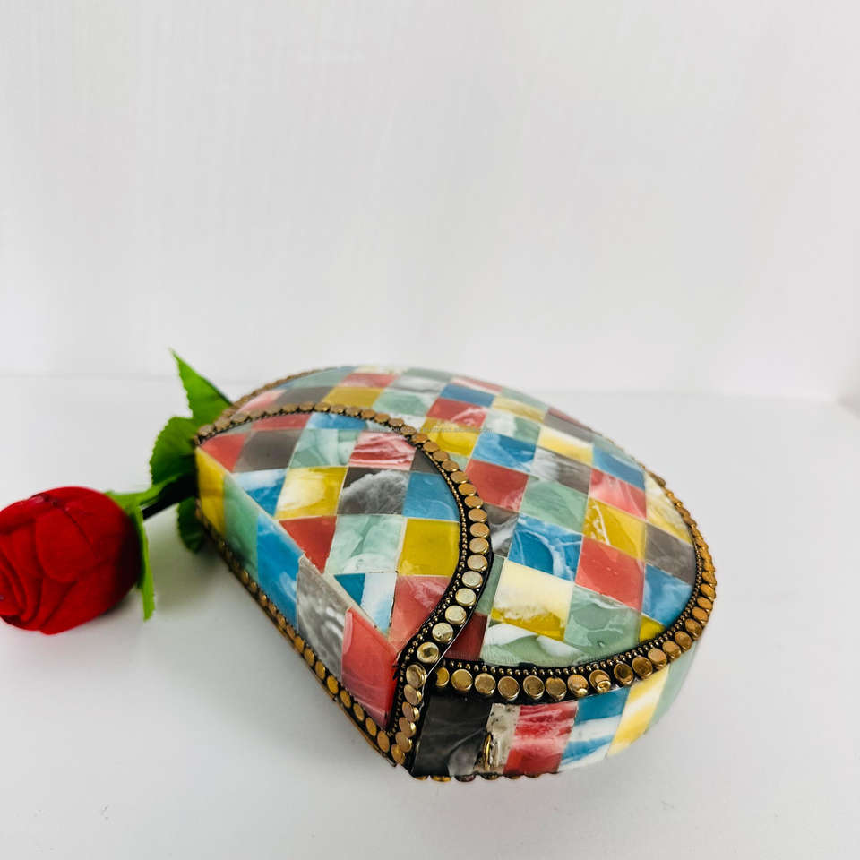 Bolso de Mano de Lujo Personalizado, Moderno, Chapado en Oro, de Aluminio Pulido, con Diseño de Mármol Multicolor, Estilo Antiguo, Hecho a Mano