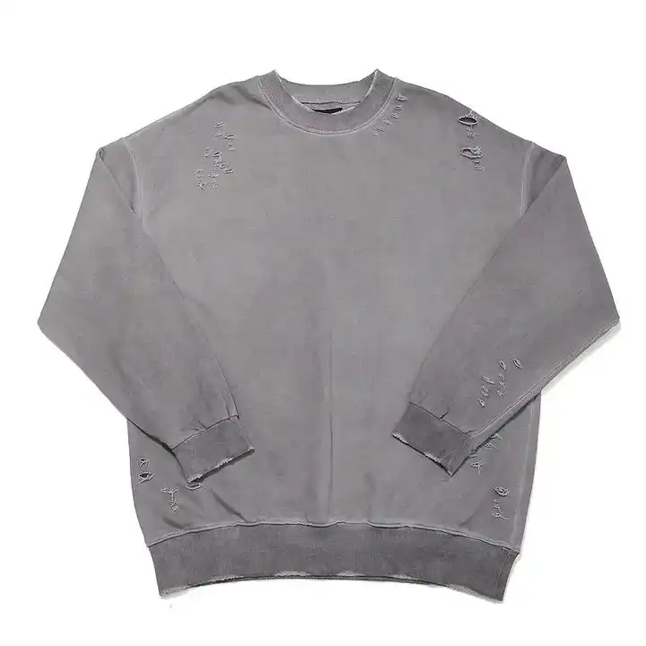 Sudadera con Capucha de Lujo Personalizada para Hombre, Cuello Redondo, Estilo Vintage Desgastado con Lavado Ácido