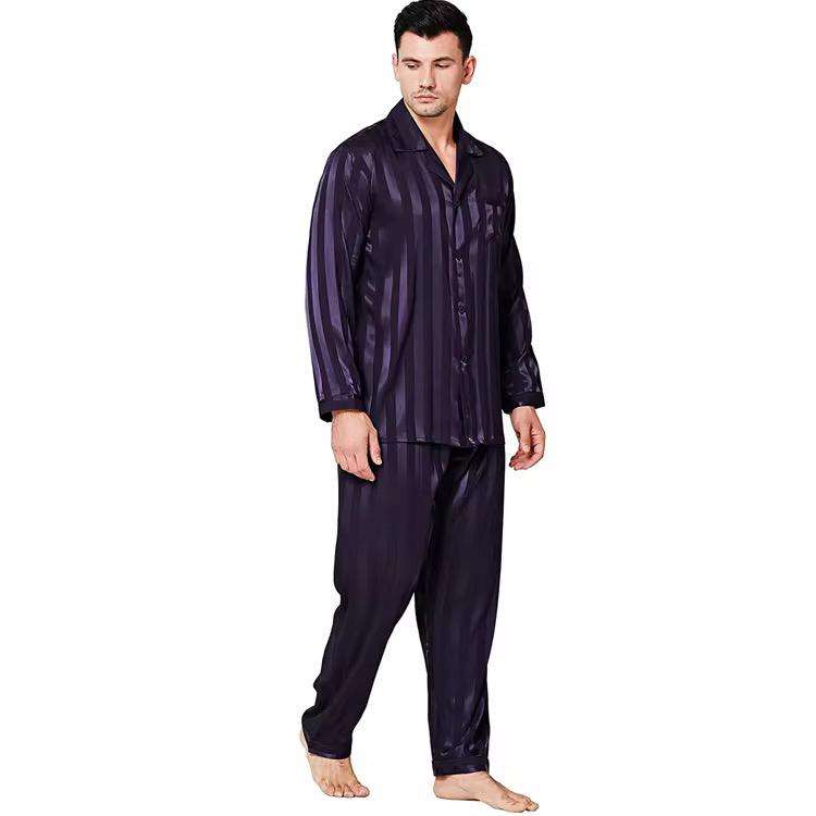 Conjuntos de pijamas de seda satinada de lujo personalizados para hombre, pantalones, Tops, 2 uds., trajes de pijamas para adultos, manga larga, satén sólido para hombre