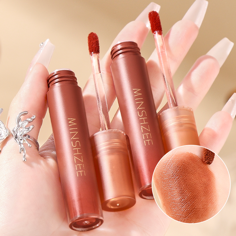 Base de barro de labios MINSHZEE Mousse personalizada-Líquido de brillo de tinte de labios impermeable a prueba de transferencia de larga duración mate de terciopelo