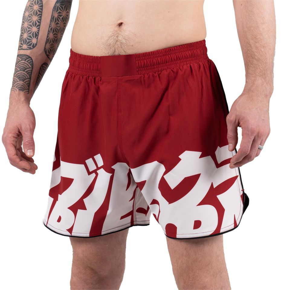 Pantalones Cortos de MMA Personalizados, Duraderos, para Entrenamiento y Grappling, para Hombre, Casuales, con Cintura Elástica, Textura Roja y Blanca | Artes Marciales, Boxeo