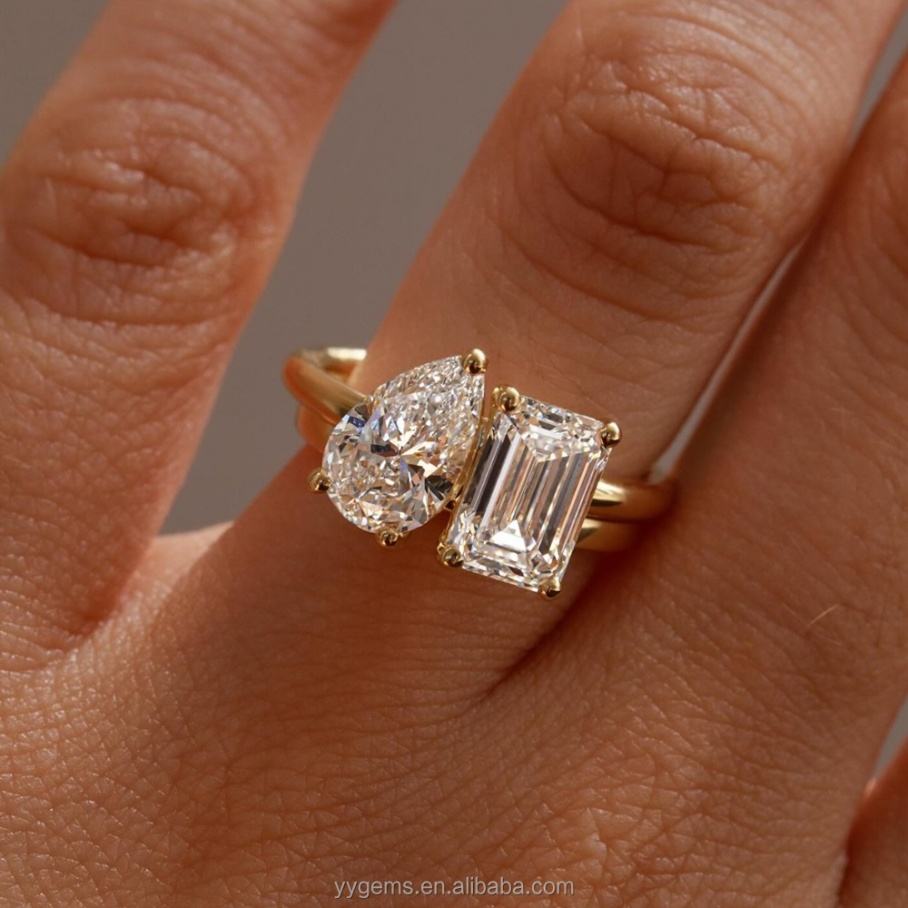 Nombre:Anillos finos de mujer con joyería de oro de 18 quilates y moissanita OCT de pera de 2 quilates