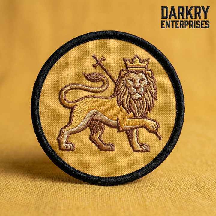 Parche Termoadhesivo Bordado a Máquina Personalizado, León de Judá como Rey, Símbolo Religioso Cristiano, Insignia Redonda para Ropa, Bolsos y Gorras