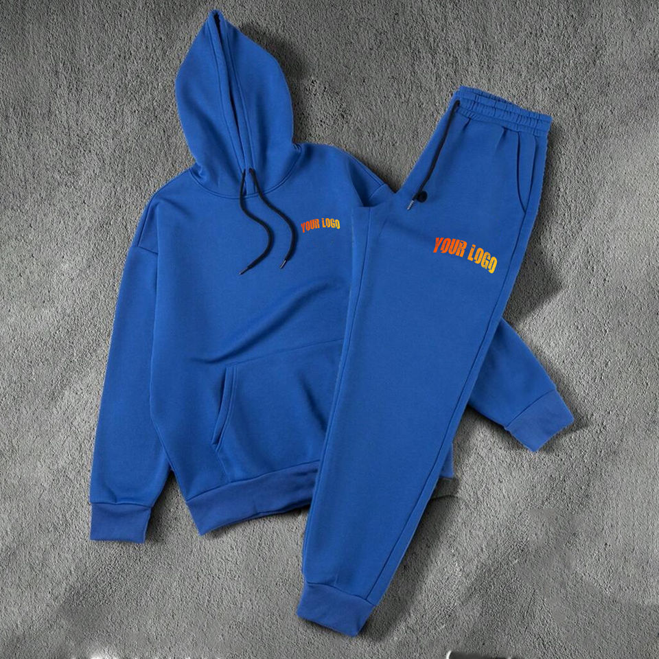 Conjunto Deportivo de 2 Piezas para Hombre, Hecho a Medida, 100% Algodón, Talla Grande, Corte Ajustado, Pantalones Deportivos y Sudadera con Capucha