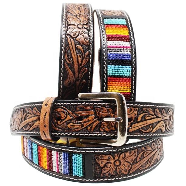 Cinturón de cuero de vaca 100% hecho a medida último diseño de niño de vaca occidental con acero de trabajo de cuentas para hebilla para hombres y mujeres