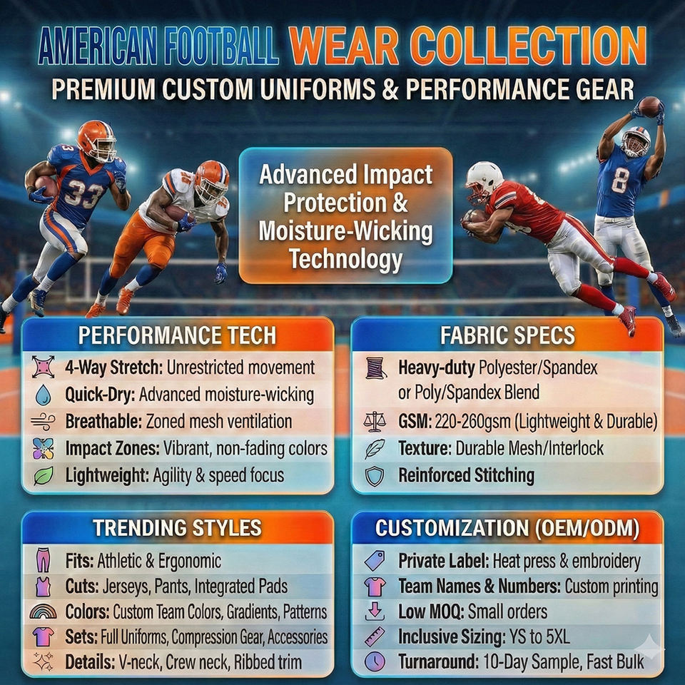 Uniformes de Fútbol Americano Personalizados, Diseño Elegante, 100% Poliéster, Ropa Deportiva de Alta Calidad, Tallas Grandes, Antibacterianos