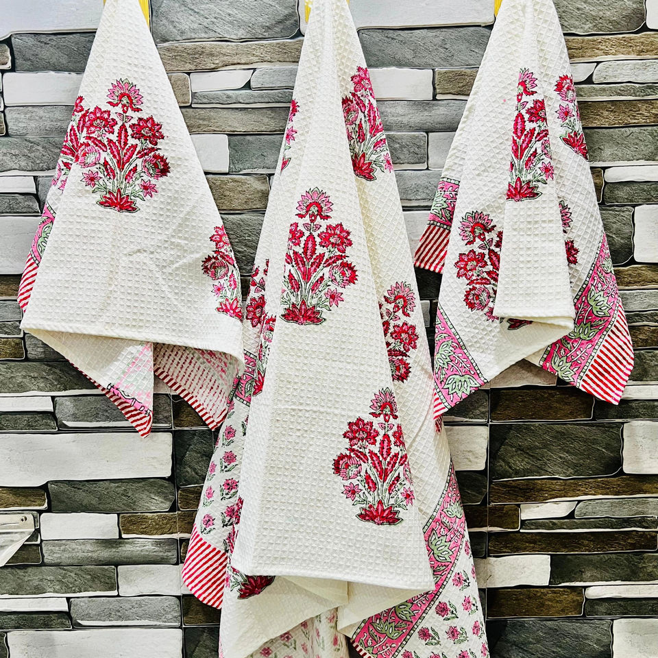Toallas de algodón con estampado floral de bloque de secado rápido orgánico de calidad superior 100% hechas a medida para reventa en el hogar en tiendas textiles