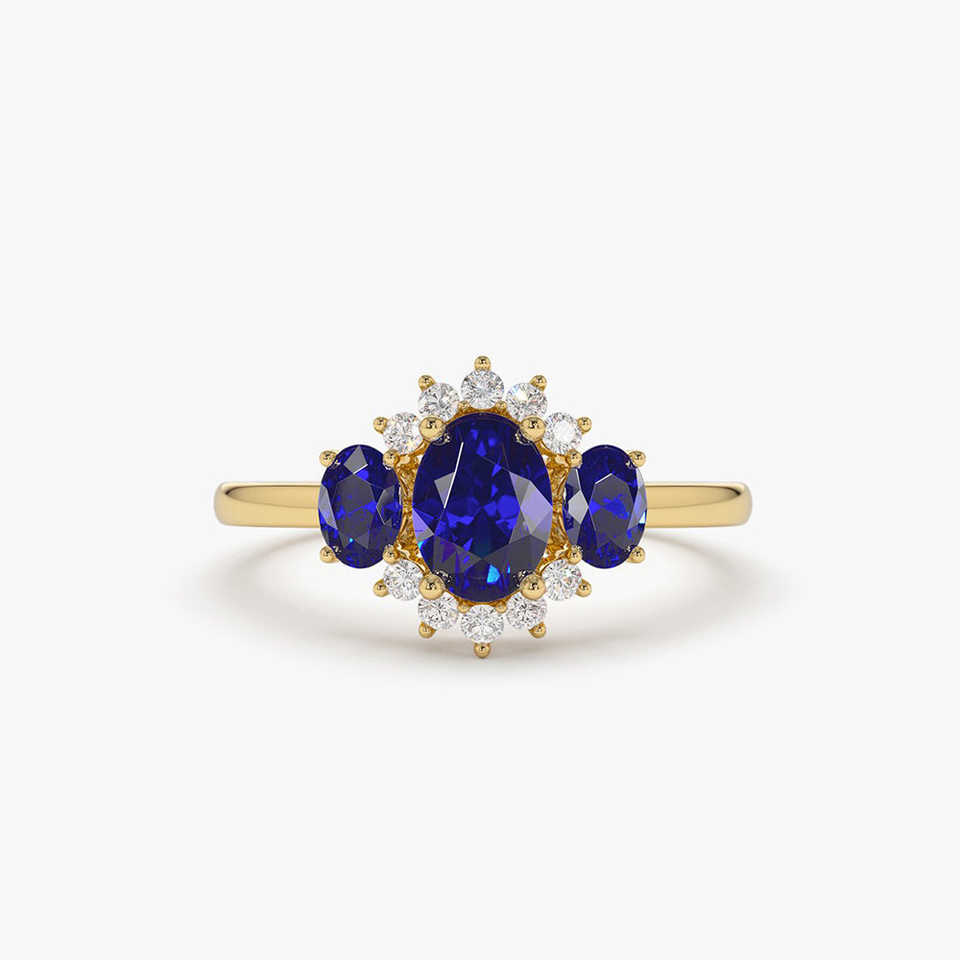Por encargo 14K piezas de oro sólido más vendidos colecciones de joyas 14K tres piedras preciosas zafiro diamante racimo anillo