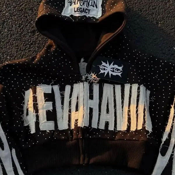 Sudaderas con capucha de 400 gramos hechas a medida, juego de calor, apliques de diamantes de imitación, bordado, lavado ácido, impresión en relieve diseñada para hombres.