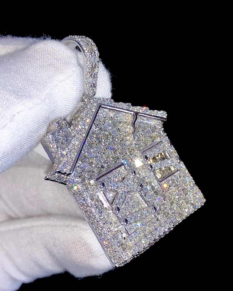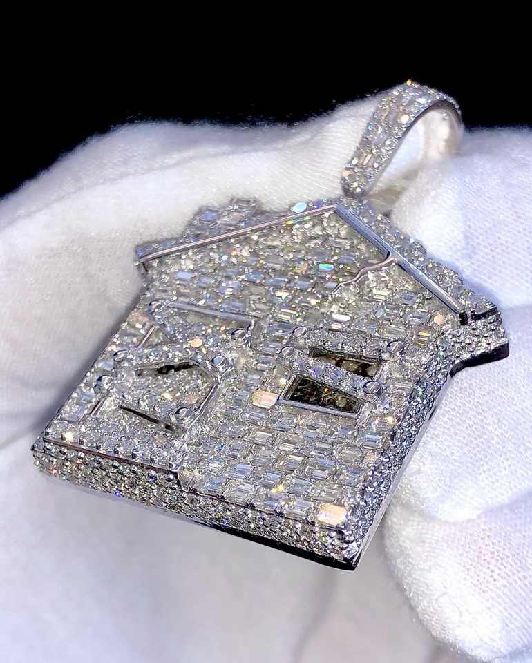 Por encargo 925 Plata rodio plateado Baguette corte moissanita garra conjunto VVS Bustdown trampa hogar totalmente helado moda encanto collar