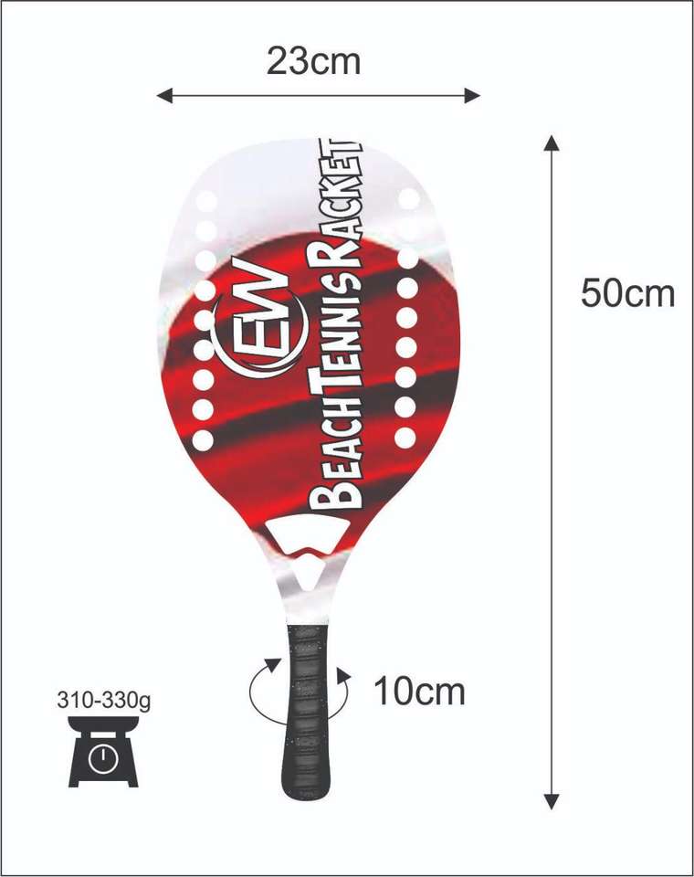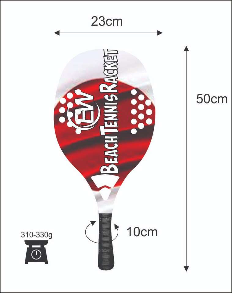 Raquetas de Tenis Playa y Pádel Personalizadas, Fibra de Carbono y Vidrio, Combinaciones de Colores con Logotipos, Peso 310-330g, Longitud 50cm