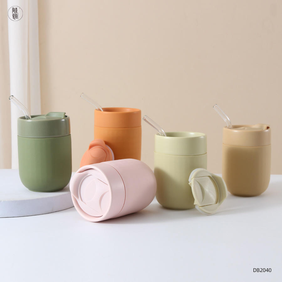 Taza de viaje de cerámica hecha a medida con tapa, resistente al calor, para uso en exteriores, juego de regalo de 350 ml