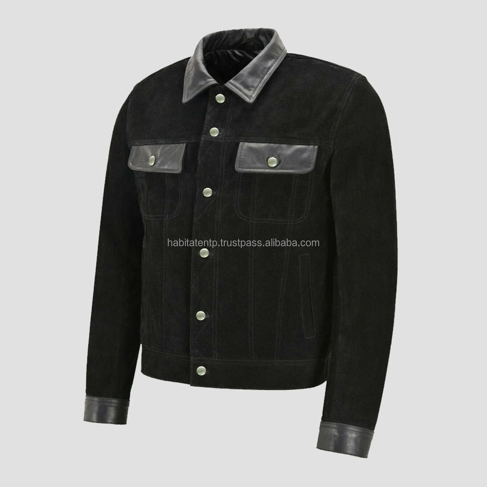 Chaqueta de ante occidental de estilo clásico para hombre, chaqueta masculina de piel auténtica con dos bolsillos delanteros, hecha a medida, color negro