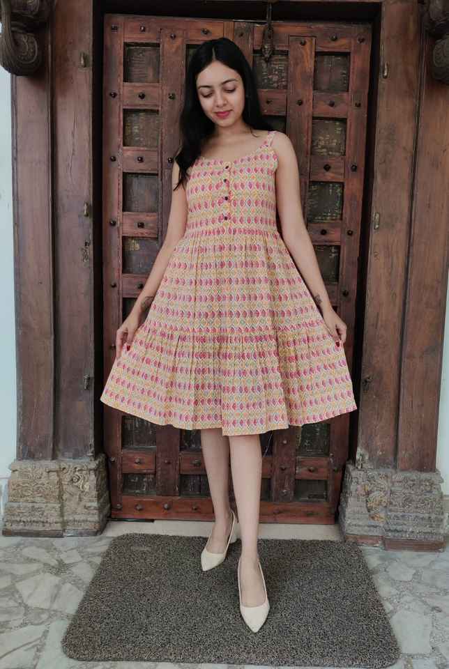 Vestido de algodón sin mangas con volantes, Pack de 2 niveles de vuelo y botones frontales que se pueden abrir