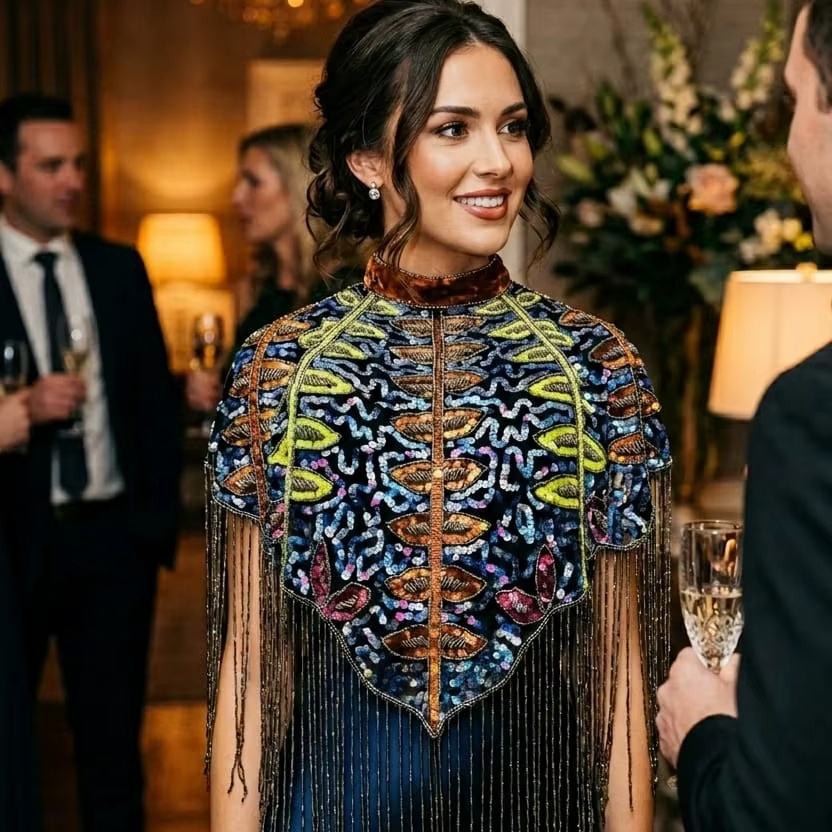 Capa de Cuentas Hecha a Mano Personalizada para Novias y Vestidos de Noche, Apta para Clientes de Boutique y Revendedores de Ropa