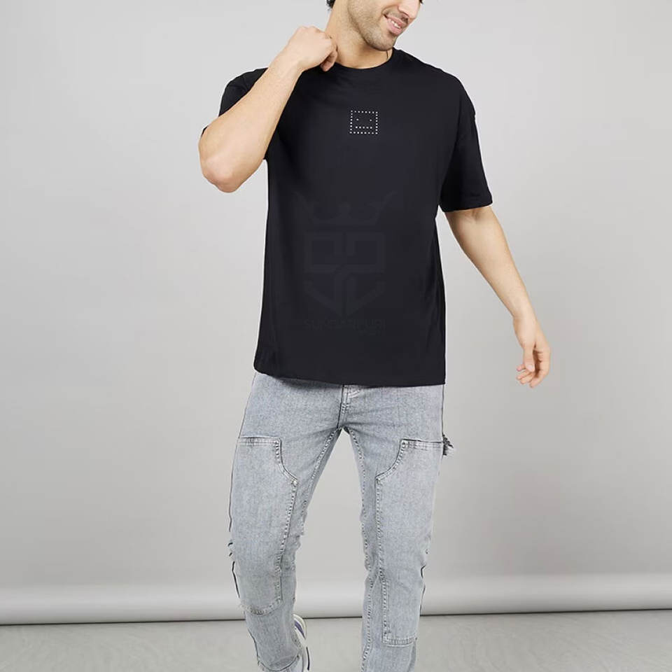 Camiseta de hombre con diseño personalizado, 100% algodón, con pedrería, color sólido, transpirable, de corte holgado, con logo impreso y pedrería.
