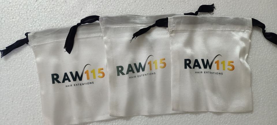 Bolsas con cordón hechas a medida hechas de tela satinada y cintas de satén con opción de impresión también para fines de reventa.