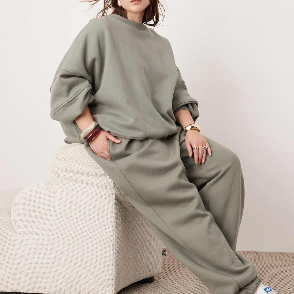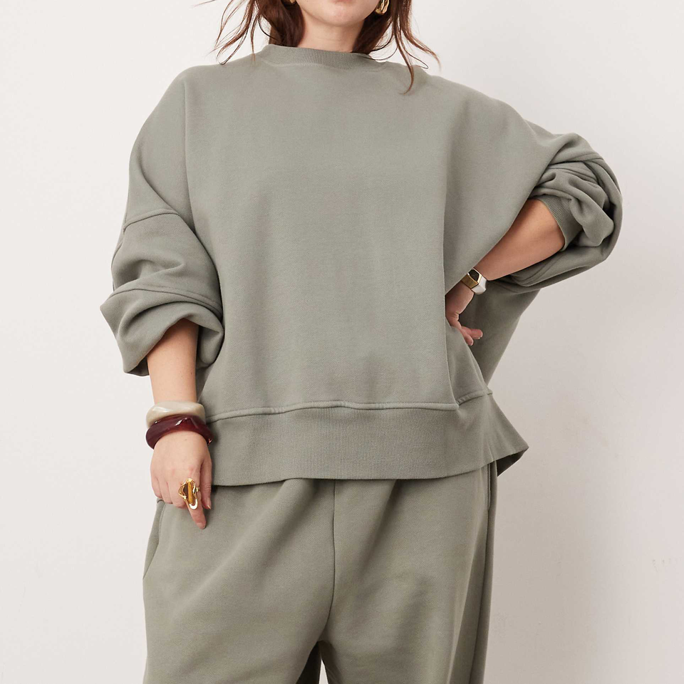 Sudadera Holgada con Hombros Caídos, Estilo Urbano, Talla Grande, Encaje Sólido, 100% Algodón, Transpirable, para Invierno, Cálida, para Mujer