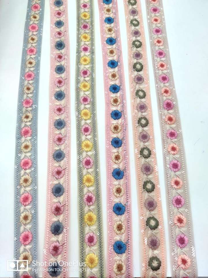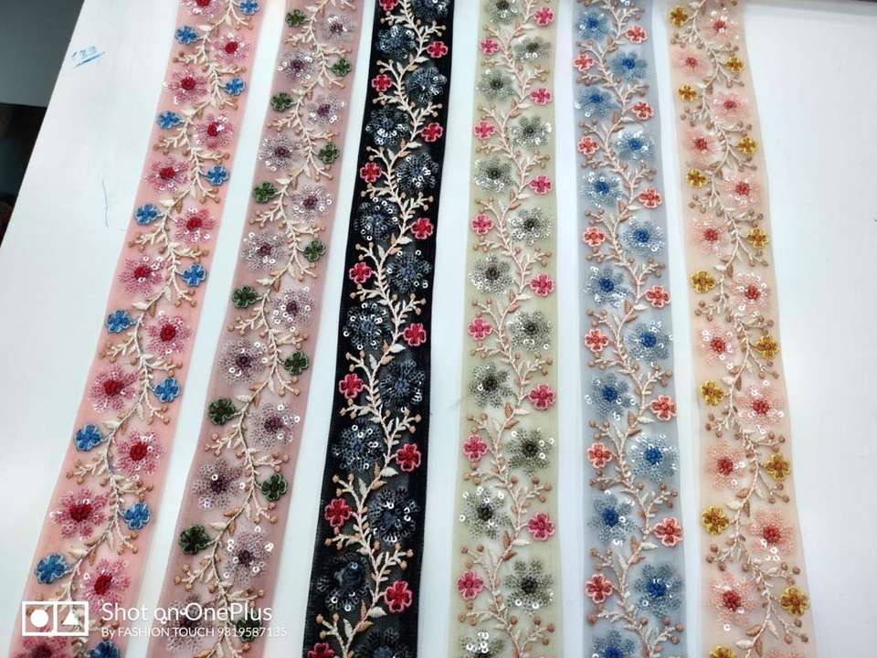 Encajes de trabajo con lentejuelas, hilo floral bordado hecho a medida, opciones multicolor de 1,5 pulgadas de ancho