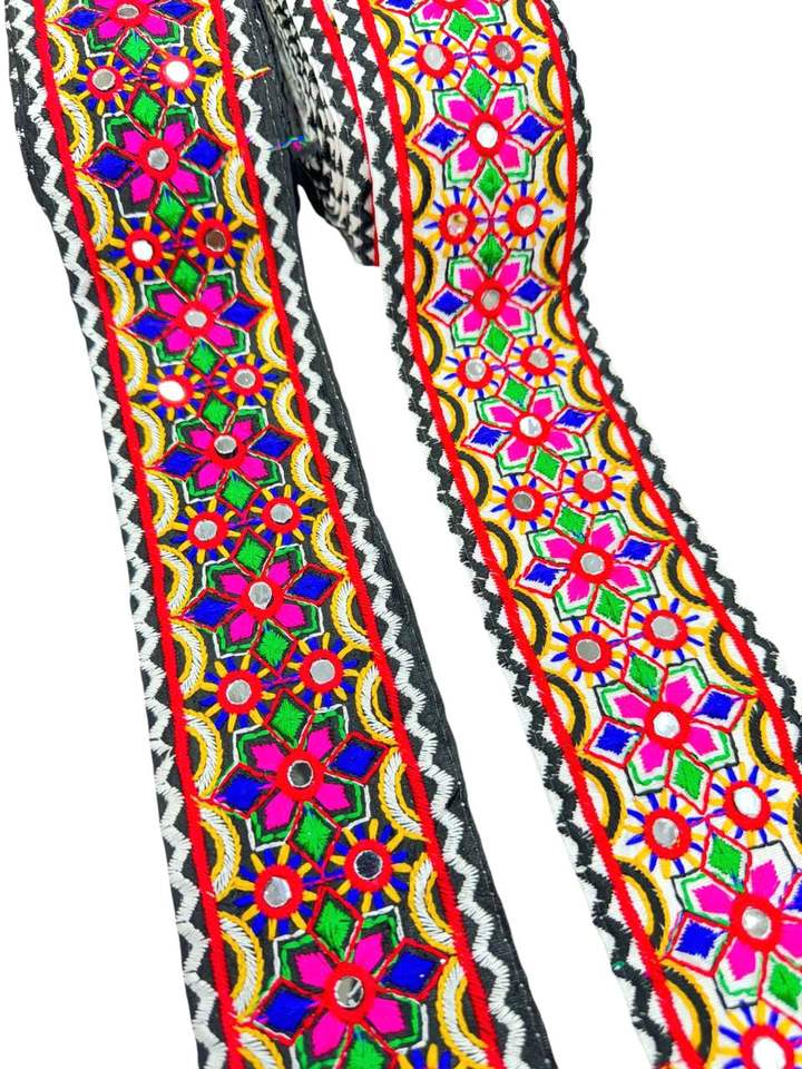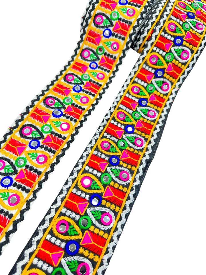Cordones multicolores bordados a medida con temas tribales, incluidos espejos, ideales para reventa por diseñadores de moda