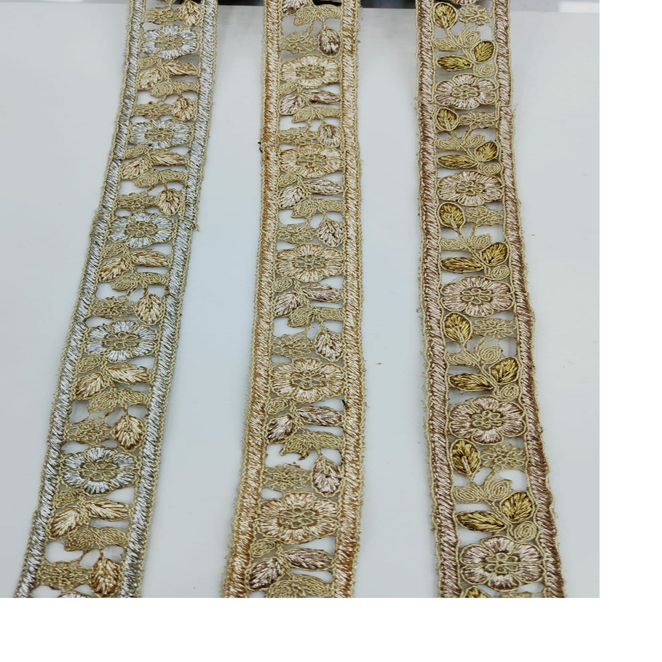 Encajes de trabajo de hilo bordado hechos a medida, opciones multicolor en oro, zari, trabajar en ancho de 1,5 pulgadas