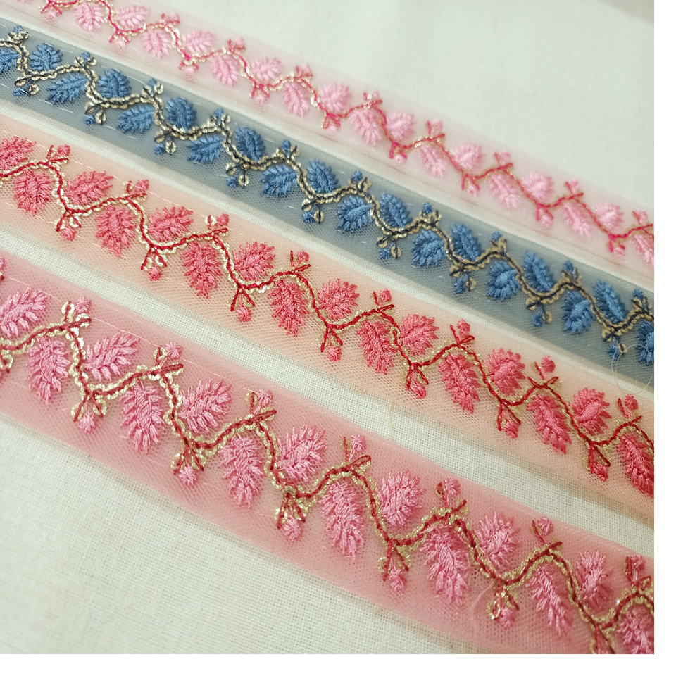 Encajes de trabajo de hilo bordado hechos a medida, opciones multicolor en lentejuelas bordadas en 1 pulgada de ancho