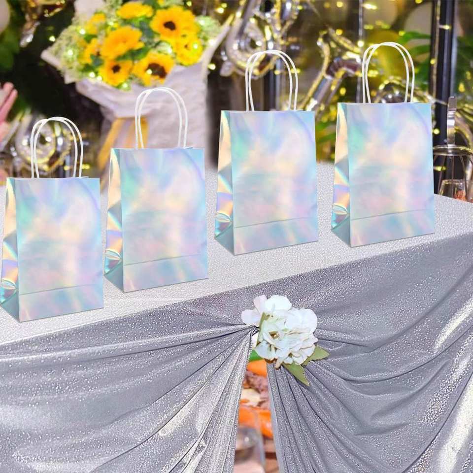 Bolsas de Regalo de Papel Kraft Impresas Personalizadas con Impresión Completa y Láser Plateado para Navidad, Bodas, Cumpleaños y Fiestas