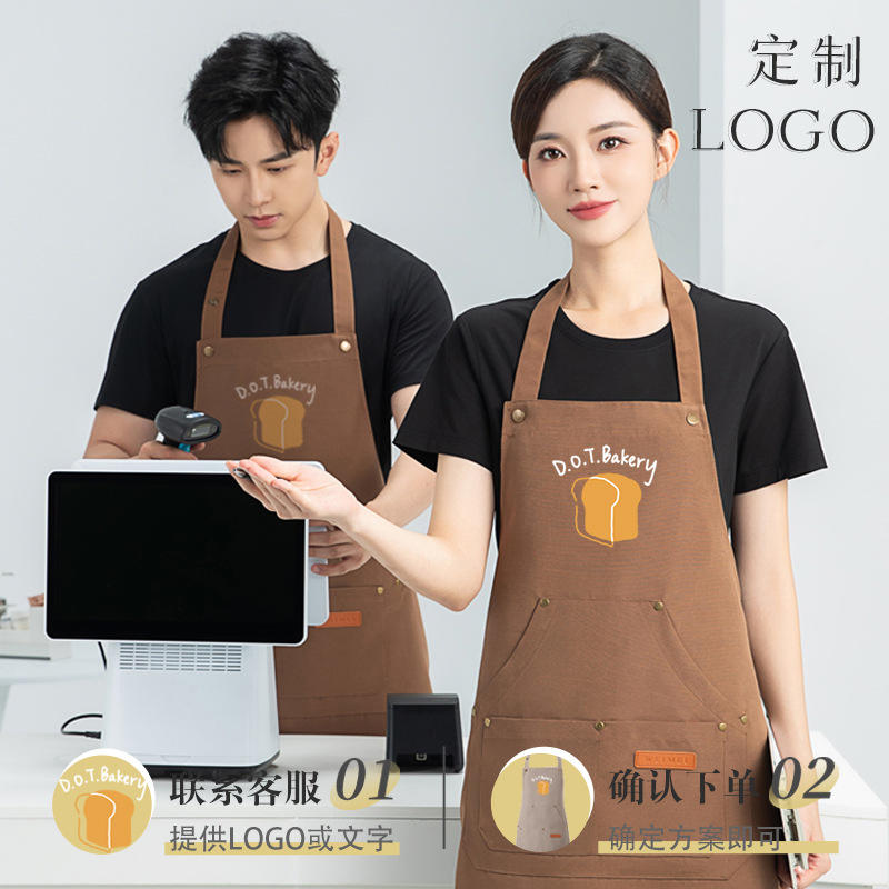 Delantal de trabajo personalizado con cuello halter, color sólido, con bolsillo, de poliéster impermeable, para restaurante o bar, con impresión de logotipo.