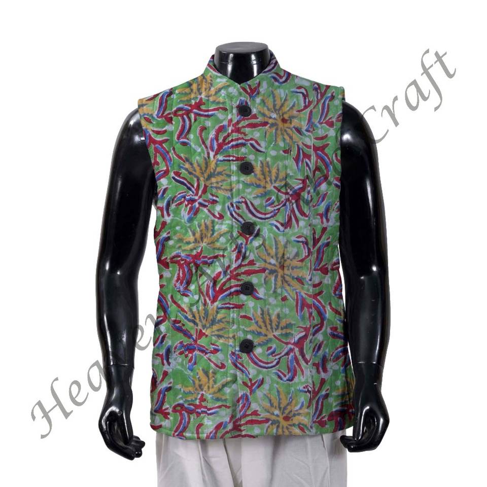 Chaquetas Kantha acolchadas con estampado de bloques a mano hechas a medida con forro de algodón Ideal para ropa de hombre para reventa Vintage hecho a mano