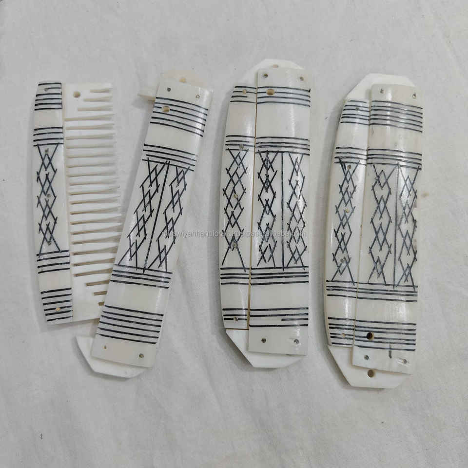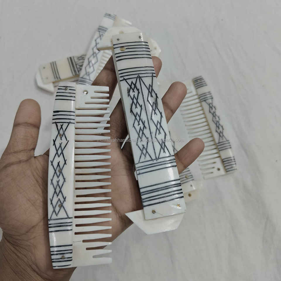 Peines de hueso de búfalo tallados a mano y hechos a medida, ideales para tiendas de accesorios para el cabello y estilistas, con base de cuero.