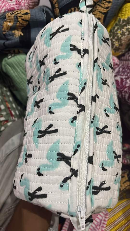 Por encargo hecho a mano acolchado tipografía impresa algodón Kantha Sling bolsas colores mezclados para maquillaje joyería viaje Essentials