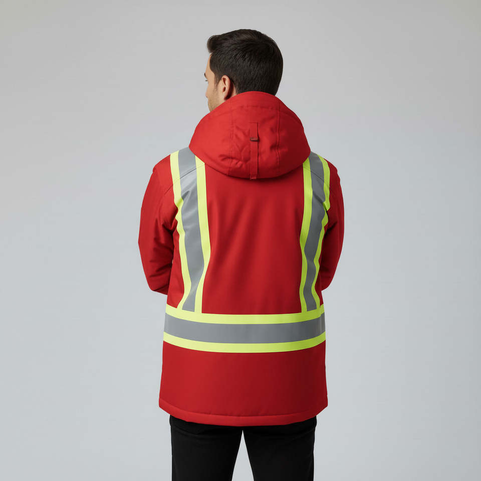 Chaqueta de Seguridad de Trabajo de Invierno de Alta Visibilidad Hecha a Medida, Chaqueta de Construcción de Seguridad ANSI Clase 1, Impermeable, Reflectante y Cortavientos para Hombre