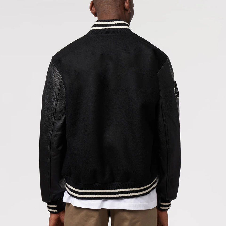Por encargo de alta calidad Varsity Letterman chaqueta 100% algodón lana invierno listo Chenille parches mangas de cuero logotipo frontal