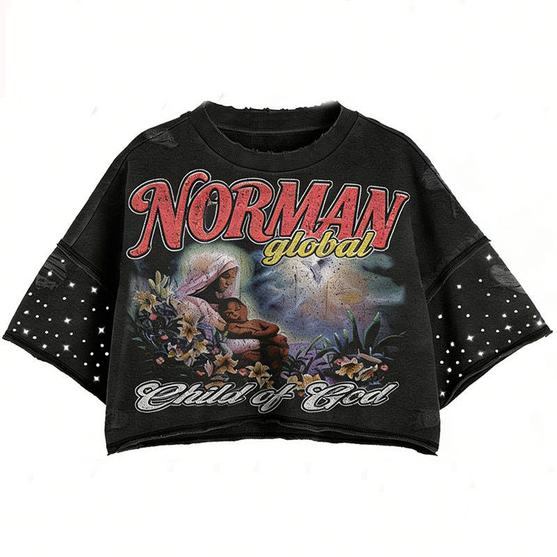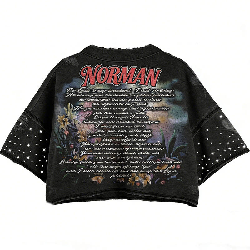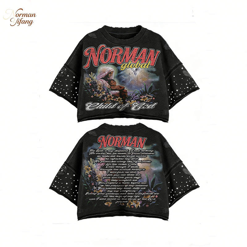 Camiseta de Algodón Puro con Cuello Redondo, Estilo Hip-Hop Y2K, Diseño Urbano Holgado de Manga Corta, Personalizada