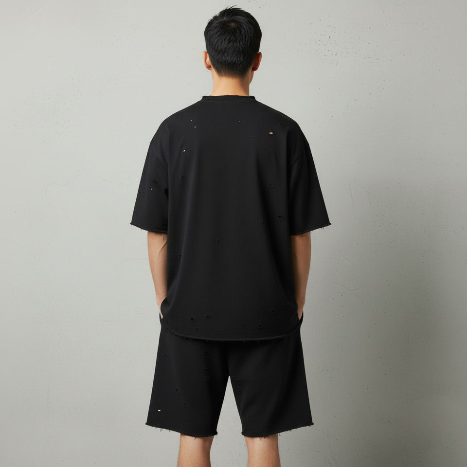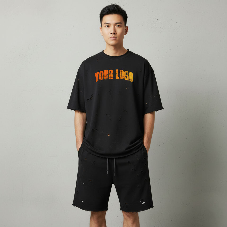 Conjunto de 2 piezas para hombre, estilo hip hop personalizado, corte holgado, desgastado, informal de verano, 100% algodón, transpirable, talla grande.