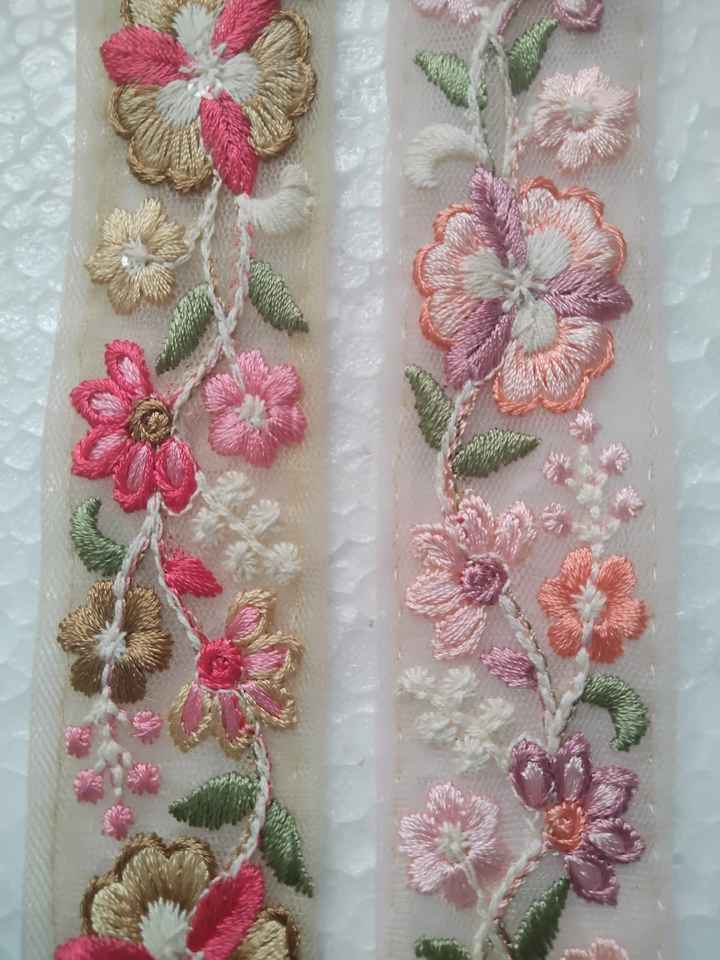 Cintas bordadas florales intrincadas hechas a medida en 11 cm de ancho, ideales para usar como ribete y borde en ropa y textiles para el hogar