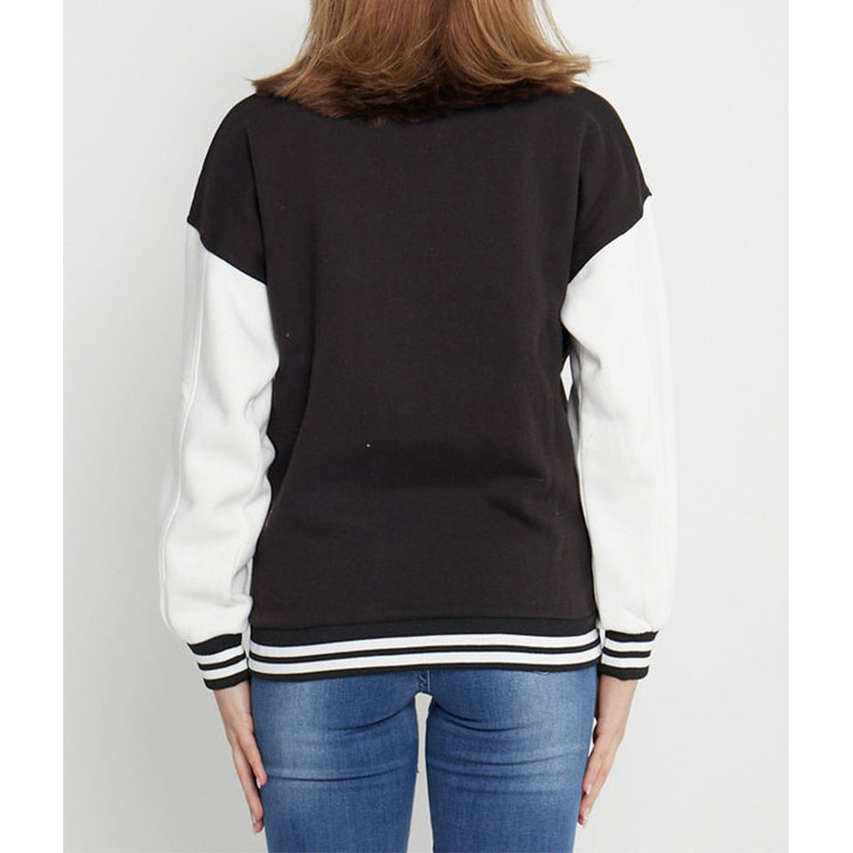 Nombre del producto:NEGRO CONTRASTE MANGA LETRA UNISEX VARSITY CHAQUETA