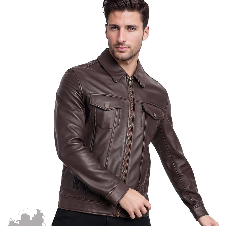 Abrigo de cuero genuino para hombre hecho a medida | Ropa de abrigo clásica elegante ajustada | Fábrica de proveedores al por mayor OEM ODM
