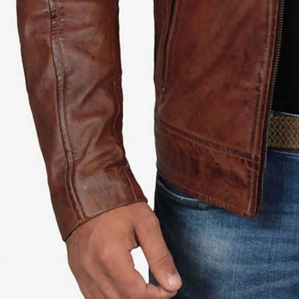 Chaqueta de Cuero Marrón Elegante para Hombre Hecha a Medida, Diseño de Cuello Camisero con Puños Abiertos, Chaqueta de Cuero Genuino Totalmente Personalizada
