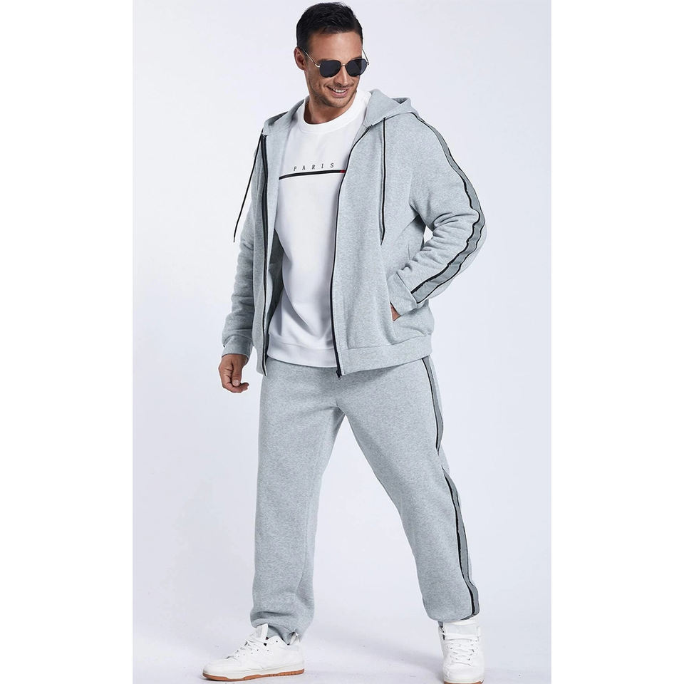 Por encargo de los hombres de alta calidad transpirable invierno Casual chándal de algodón de lana ropa deportiva impresa cremallera Sudadera con capucha pantalones de chándal