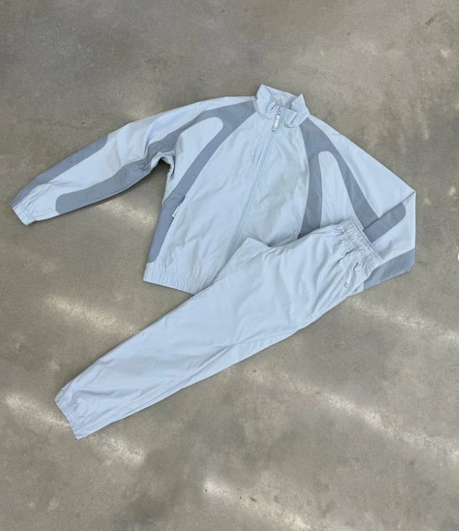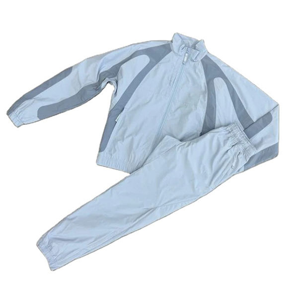 Conjunto de chándal de poliéster hecho a medida para hombre, chaqueta de nailon con cremallera de retazos y pantalones para correr, conjunto cortavientos de panel de nailon de alta calidad