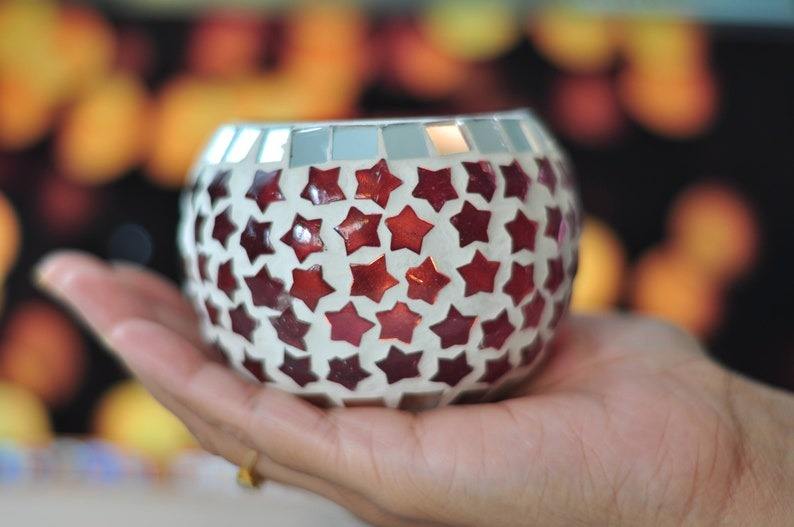 Portavelas de Mosaico de Cera de Abeja Hechos a Medida, Altamente Perfumados, Estilo Moderno para Decoración Navideña del Hogar y Tiendas