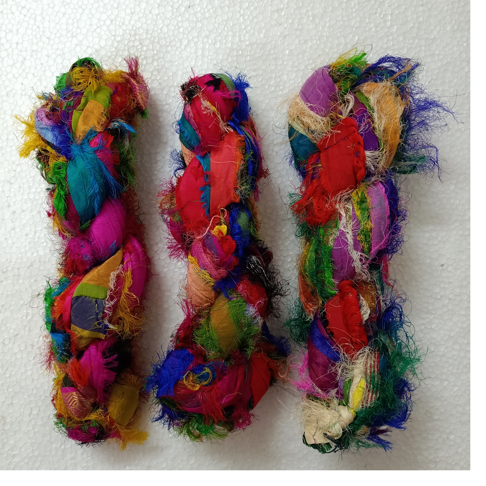 Cintas de seda Sari multicolor hechas a medida con bordes deshilachados hechas de saris de seda reciclados ideales para reventa