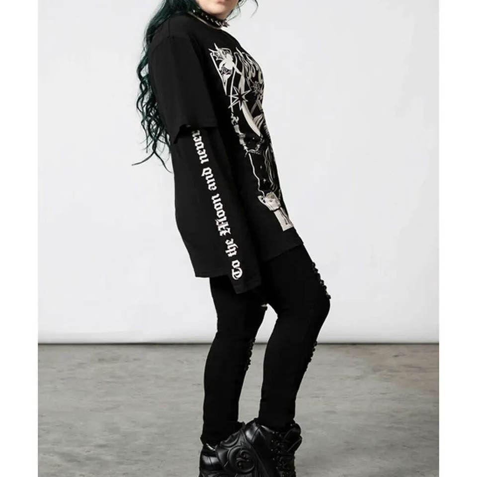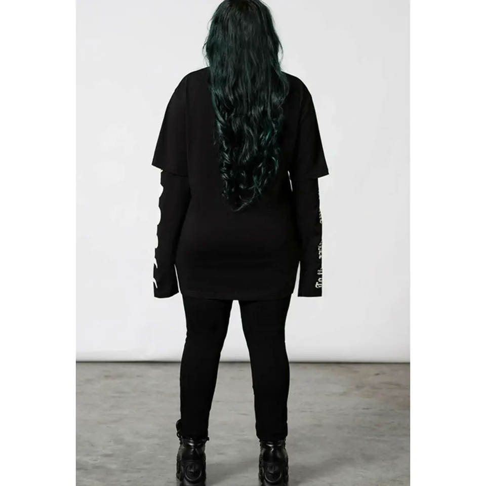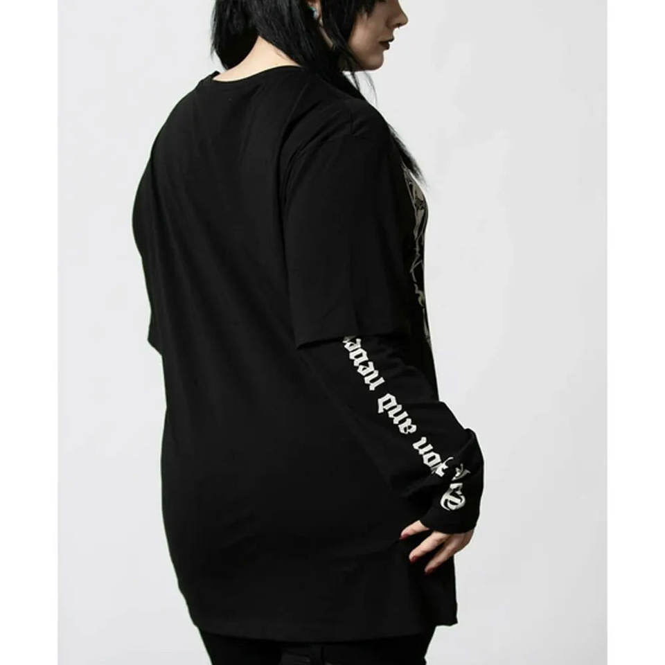 Camiseta de manga larga de gran tamaño hecha a medida, diseño de Hip Hop de lavado ácido de doble capa, Material de algodón 100% para hombres y mujeres
