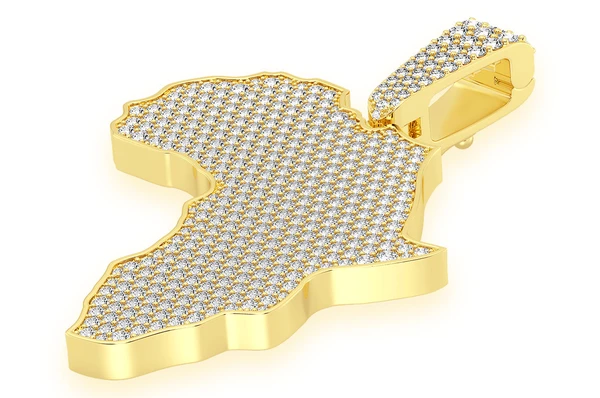 Hecho a la medida personalizado laboratorio cultivado diamante Hip Hop África continente mapa colgante Extra grande 14K oro blanco de alta calidad