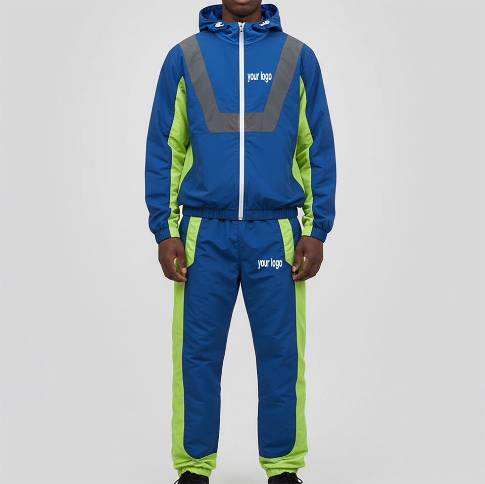Chándal Deportivo Personalizado de Talla Grande, Ligero, Impermeable, con Bloques de Color, Logotipo Impreso Personalizado, Ropa Deportiva de Nylon