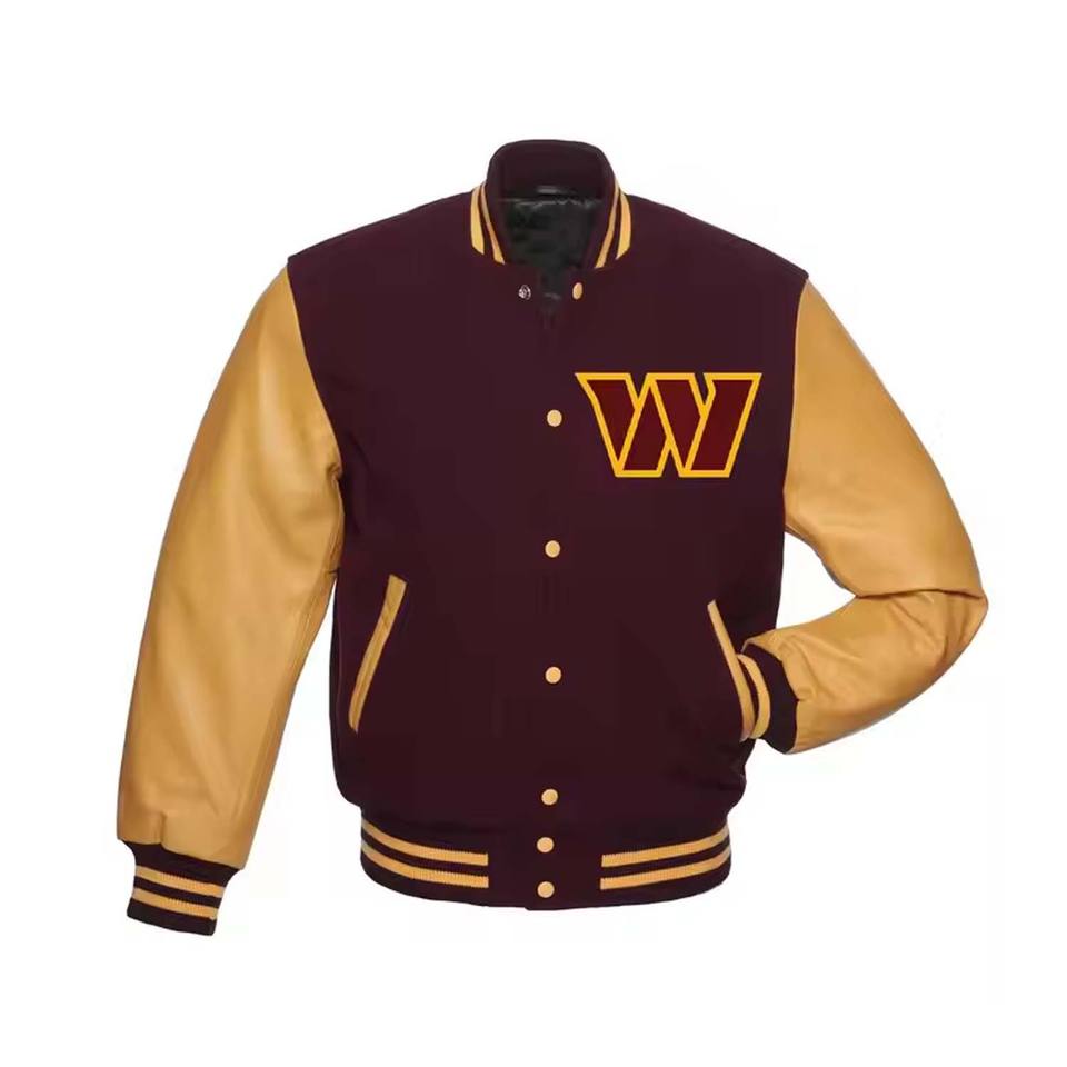 Chaqueta con letras de talla grande hecha a medida, estilo único, parches de calidad superior, chaqueta universitaria de manga de cuero y cuerpo de lana