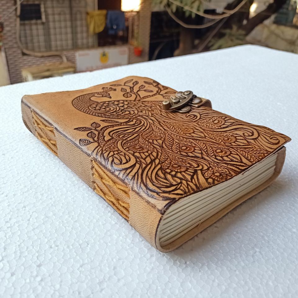 Diarios de cuero en relieve de pavo real portátiles hechos a medida tamaño 5*7 hechos a mano con papeles de trapo de algodón reventa amigable